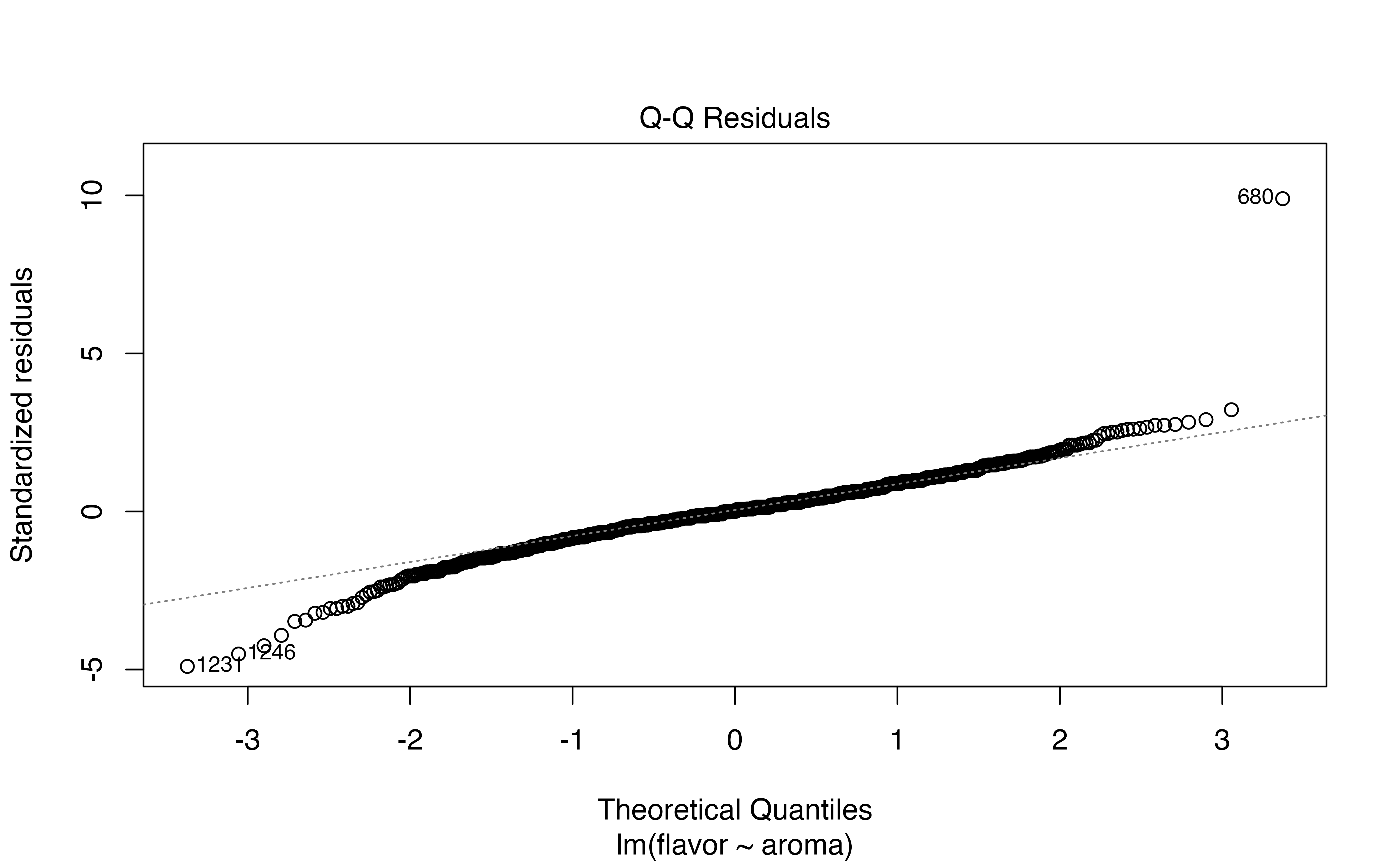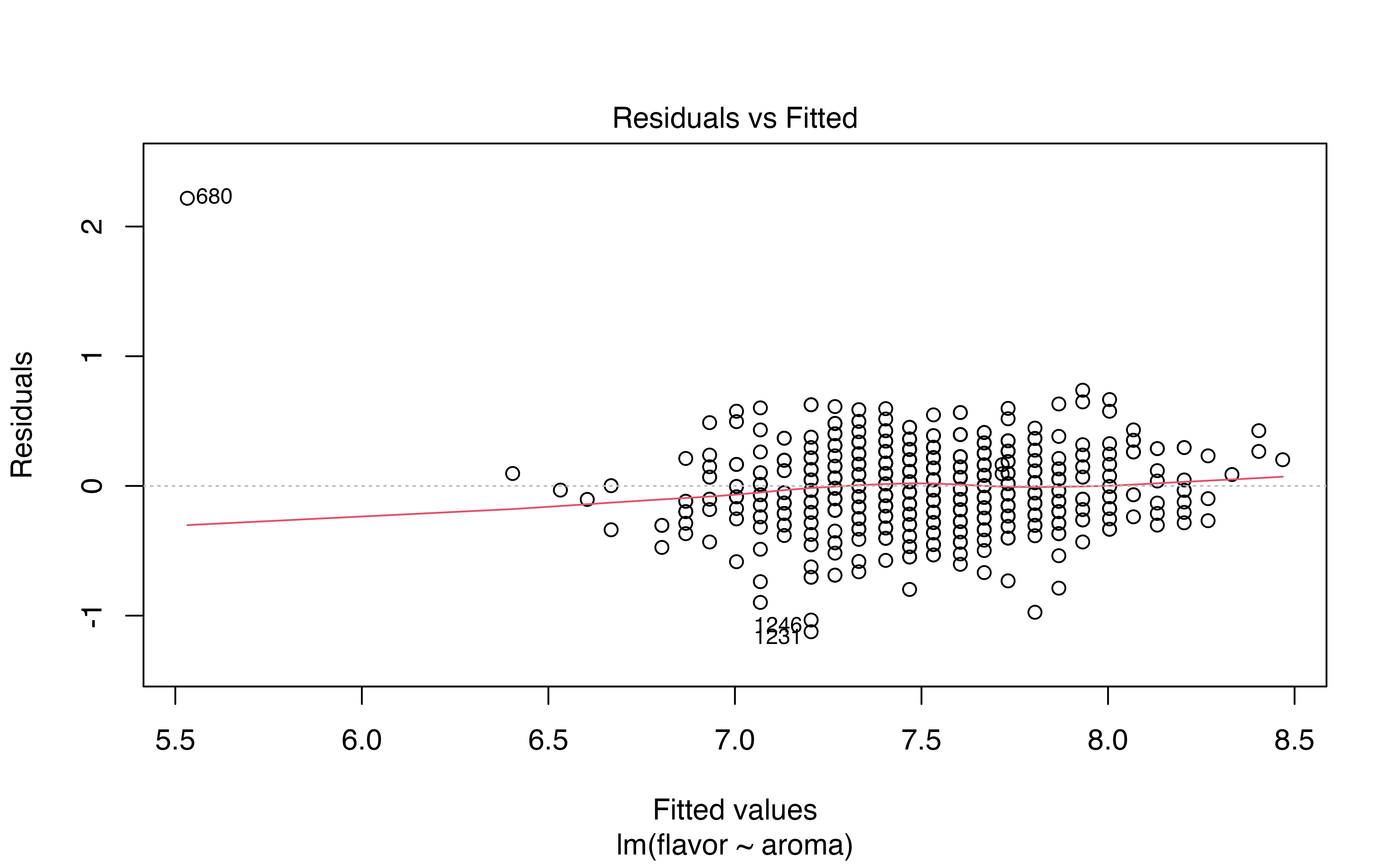 | flavor | aroma | .fitted | .resid | .hat | .sigma | .cooksd | .std.resid |