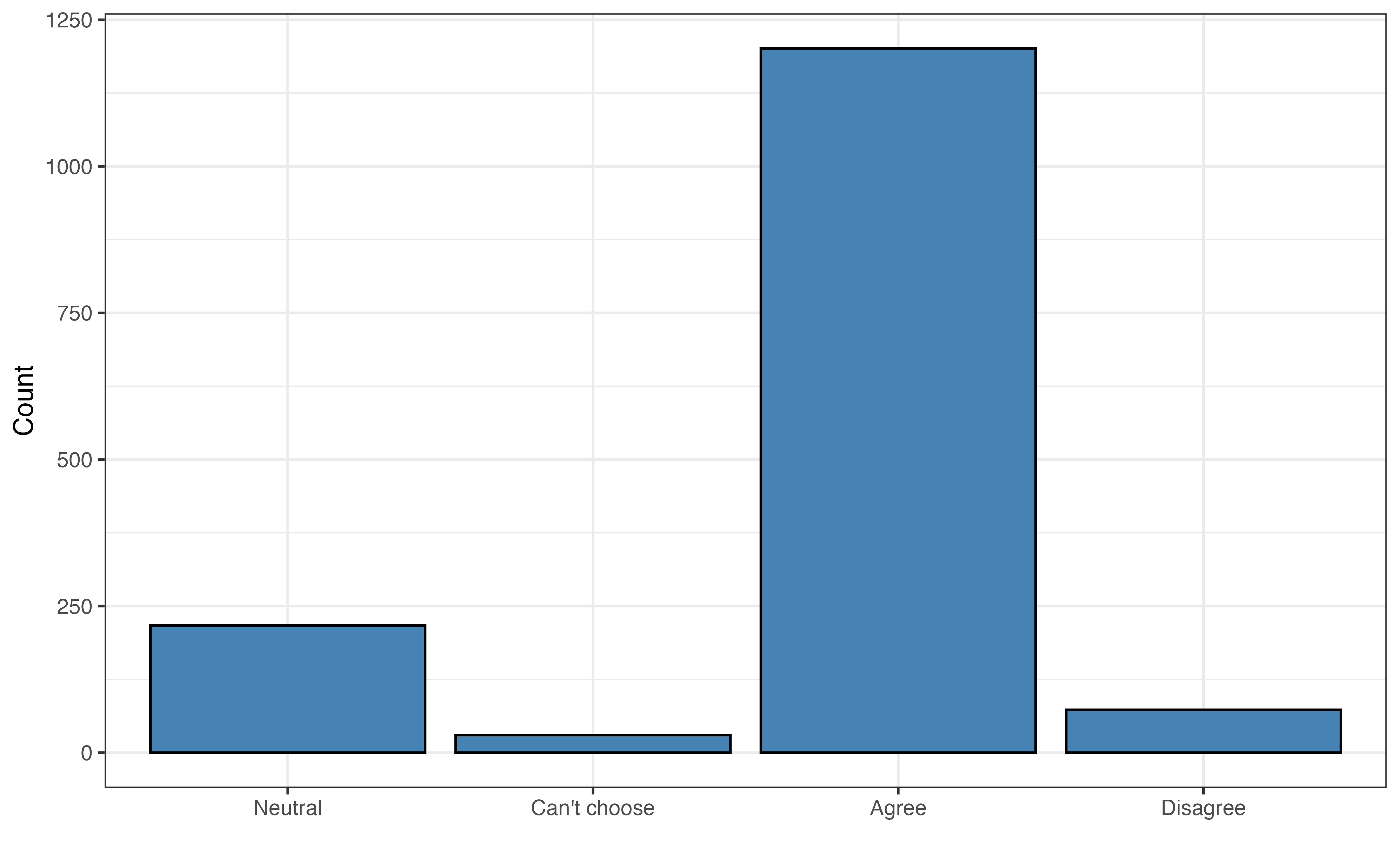 We also observe from Figure 11.2 that the majority of the respondents (about 57 %) reported their sex as female, and a vast majority of respondents (about 79%) agree that technology is making life easier.